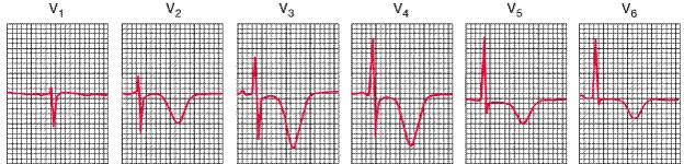 b Disminución progresiva de la amplitud de la onda R desde V1 hasta las derivaciones precordiales medias o laterales.Diagnóstico diferencial de las elevaciones del segmento ST