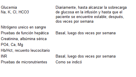 Glucosa en sangre capilar medida con tiras Tres veces al día hasta que el paciente se estabilice