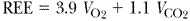 Sin embargo, la ecuación anterior tiende a sobreestimar el REE en obesos, y no es fiable para evaluar las necesidades energéticas en enfermos que pudieran tener hipermetabolismo o hipometabolismo. Para conocer el TEE en el sujeto enfermo que no hace ejercicio, se puede emplear la fórmula de REE de Harrison y Benedict, o bien, estimarlo en términos de 25% de kcal/kg del peso corporal ideal correspondiente a la talla, y modificar agregando 10% correspondiente a digestión y metabolismo de la alimentación intravenosa o enteral, y 12.5% más por cada grado de fiebre que rebase los 37°C, además de un multiplicador adicional que refleja la gravedad de la enfermedad (p. ej., 25% en caso de cirugía general, 50% en sepsis y 100% en quemaduras extensas de tercer grado). El TEE se mide en forma directa con mayor precisión por el método de intercambio gaseoso (calorimetría indirecta), para lo cual se utiliza un equipo desplazable de estudio metabólico. El procedimiento puede aplicarse a los pacientes conectados a un respirador en los que la fracción de oxígeno administrada es inferior a 0.45. Como el objetivo es obtener una aproximación exacta a las necesidades energéticas en 24 h, las mediciones deben realizarse a intervalos durante el día y deben tener en cuenta las diversas variables, como la ingestión de alimentos y la actividad. Para calcular el coste energético del metabolismo mediante calorimetría indirecta, se miden los volúmenes (V) de oxígeno consumido y de anhídrido carbónico producido en un período determinado, según la ecuación de Weir modificada:
